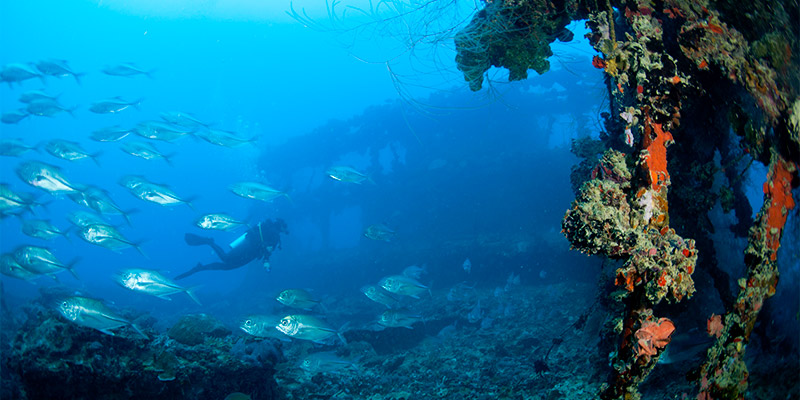 Three ocean currents converge in Palau’s waters, bringing with them some of the most varied and impressive marine life in the world. Every imaginable species of coral and over 1,500 species of fish inhabit the rich reefs, with sharks and barracuda a common sight. In addition to the marine life, Palau is also an excellent wreck diving destination. During air raids in 1944, x48 Japanese ships and numerous American and Japanese planes were sunk in Palau. These wrecks are scattered all over Palau and whilst most of the ships sank near the Rock Islands there are many still to be discovered.