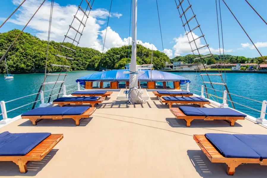 SY Palau Siren liveaboard today, settle into your cabin, meet your fellow guests, and get to know tour expert