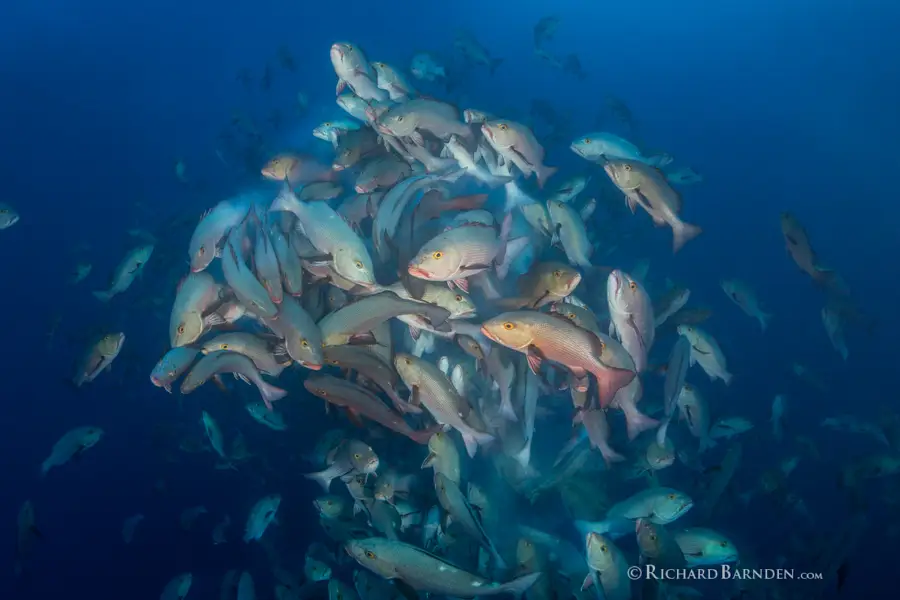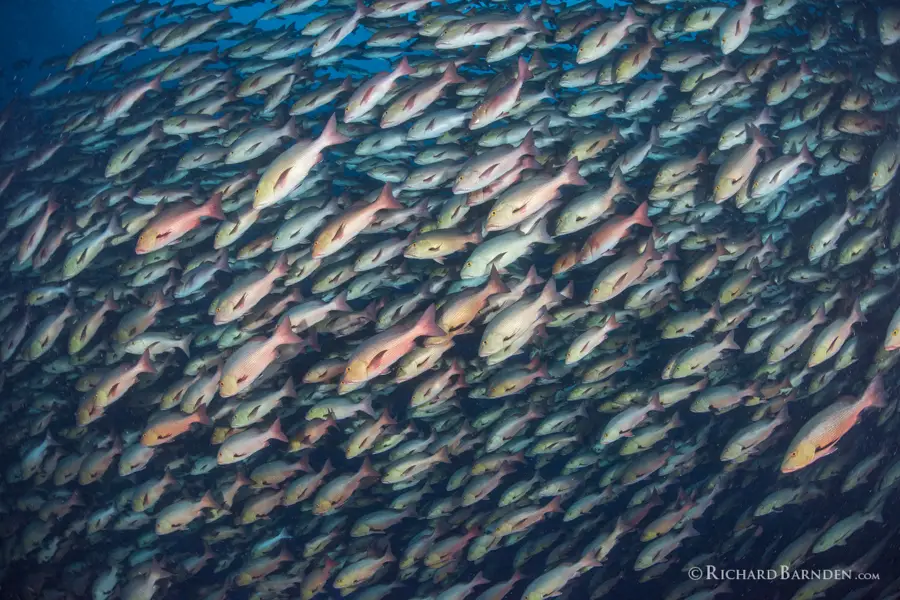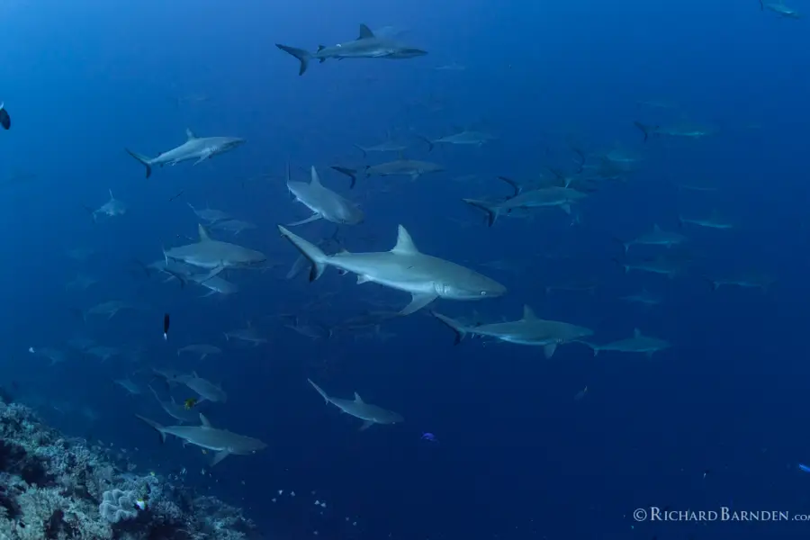 Aggregations can be many thousands in size, and in turn attract grey reef sharks, lemon sharks, oceanic blacktips, bull sharks and more predatory species. Where two spawning species are being sought on the same itinerary, a few days will be spent focusing on one species, before focus moves to the second species known to spawn at that time.