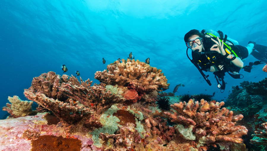 Dive sites include Shark Bank and Baie Ternay on Mahe, Grande Soeur and Ave Maria Rock around Praslin and Curieuse. Observe white-tip sharks, turtles, eagle rays and colourful coral gardens.