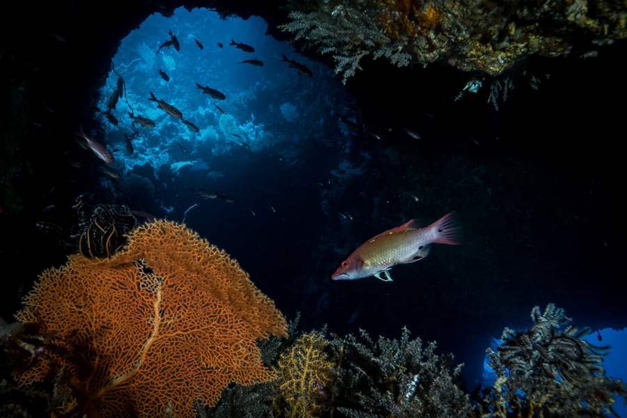 In addition to the wreck dive sites, several of the Solomon Islands’ most iconic reef sites around the Russell Islands are also visited. Leru Cut, on Leru Island, is a must, where a 100m chasm cuts deep into the island, creating dramatic lighting. Mirror Pond is a sinkhole that opens up into an underwater cavern and cave system, within five to 25m deep. Beyond the underwater highlights, this 7‑night itinerary has opportunities to step ashore. Guests can visit a local village and explore historic locations once occupied by both Japanese and Allied forces, offering a rare insight into the human stories behind one of history’s most consequential naval conflicts.