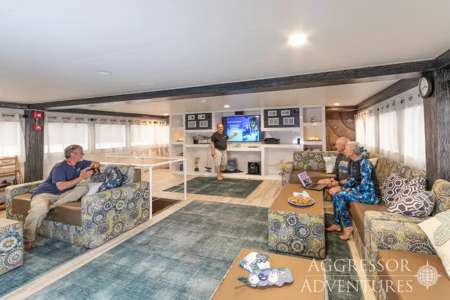 There are ample facilities for photographers on the dive deck, including a camera table with low-pressure air hoses. On the diving platform there are two hot freshwater showers, and the diving deck has ample space for each diver’s equipment. Up to five dives a day are offered from the mother ship.