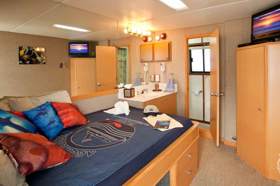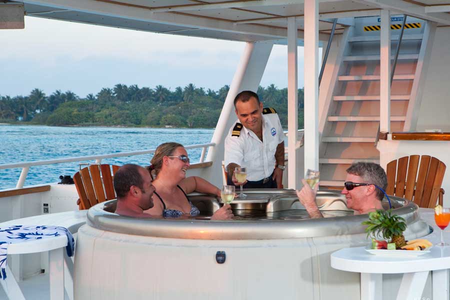 Accommodating 18 passengers in nine en-suite staterooms with modern amenities, the boat is comfortable and spacious. Facilities include a salon, partially shaded sun deck, bar, hot tub, grill and digital photo centre. There is ample storage space for everyone on the dive deck, including a dedicated camera table and facilities.