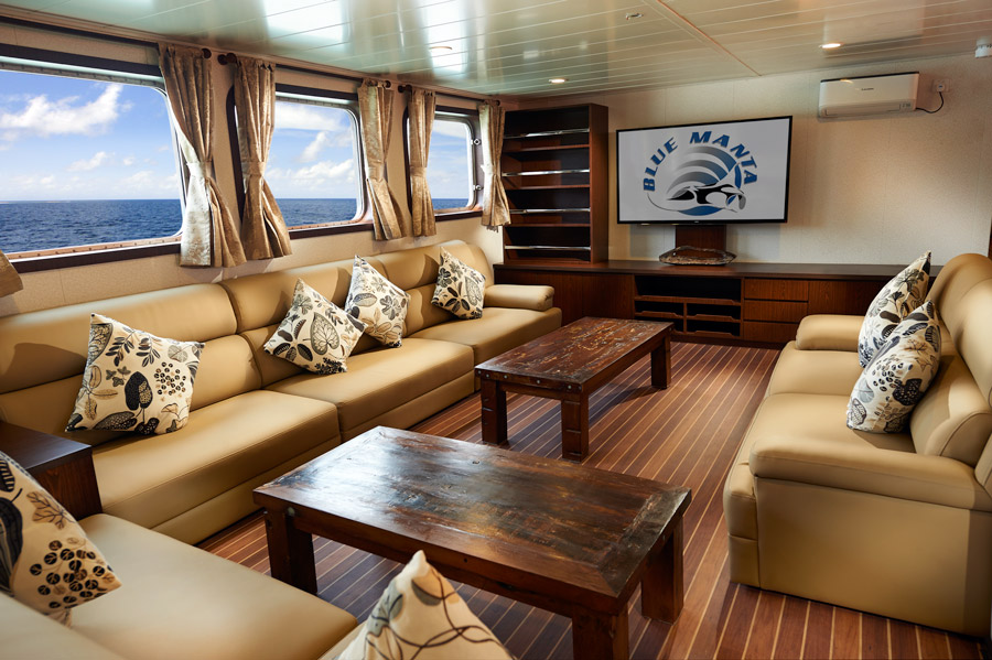 The steel hulled Blue Manta Explorer accommodates 22 guests in 14 cabins across three decks. Incredibly spacious and luxurious throughout, all cabins feature air-conditioning and have private bathroom facilities. There are six cabins on the upper deck (four double and two twin bed). Four additional cabins are towards the front of the main deck (two double and two twin bed) and there are four twin bed cabins on the lower deck. Facilities on board the 45 metre long liveaboard include partially covered sun deck with outdoor dining as well as a comfortable saloon furnished with a media server and plasma TV and air-conditioned dining area. In addition to a spacious dive deck with personal rinse tanks there is a dedicated indoor camera room with charging stations. Divers head out to the magnificent sites on one of two accompanying tenders. Satellite internet access is available on board for a local charge as are laundry and massage services. A full board meal plan is included – soft drinks, speciality coffees, beer and wine are available to purchase on board. The custom built vessel is fitted with UK 3-pin sockets with 220V. Please pack a converter if required. Guests enjoy a warm welcome and exceptional service from an experienced crew of 22 people.