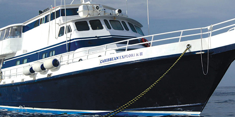 Departing on alternate Saturdays from either St. Maarten or St. Kitts, the 35 metre long Caribbean Explorer II comfortably accommodates 18 passengers in nine en-suite staterooms. The semi-enclosed, air-conditioned saloon on the upper deck includes TV, CD/DVD, video library, light table and lounge area. There is a large sundeck, photo/video lab and well equipped dive deck. Dives are from an easy-access dive platform and other onboard amenities include Nitrox.