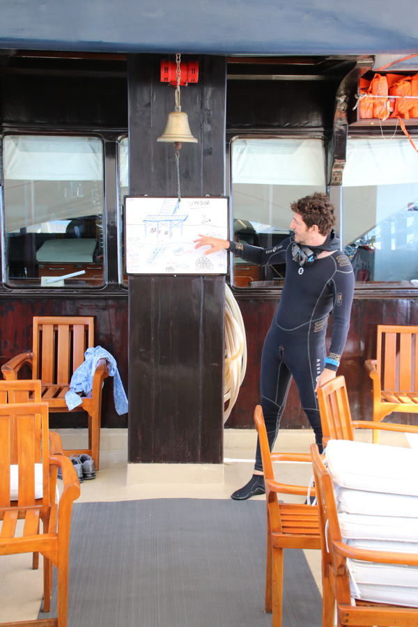 All diving is from one of two custom-built tenders and guided by an incredibly experienced dive team. Electricity supply is 220v (110v transformers available). Standard tanks are 12L with DIN adaptable valves. A limited number of 10L and 15L tanks are available on request. Nitrox (32%) is available.