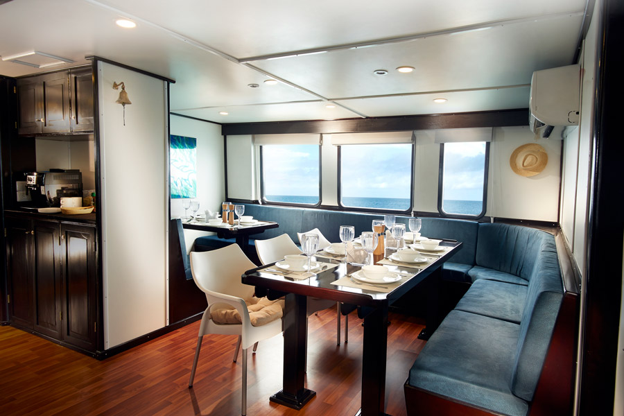 The 7 and 10-night itineraries include up to four dives a day and include time at Wolf & Darwin islands, plus land tours on North Seymour and Santa Cruz islands with time at the Charles Darwin Station on the penultimate day. Diving is from one of two pangas accompanying the boat. Water temperature can vary significantly. Although the northern area is a constant 25°C year-round, expect thermoclines and cooler water (15-20°C) in the southern areas. Divers are highly recommended to wear a minimum full 7 mm wetsuit or semi-dry with a hood and vest, or 5mm layers.