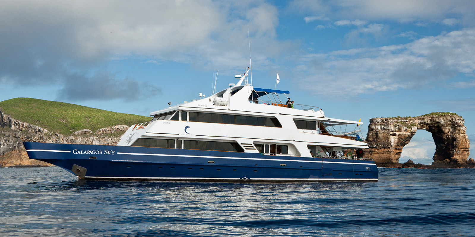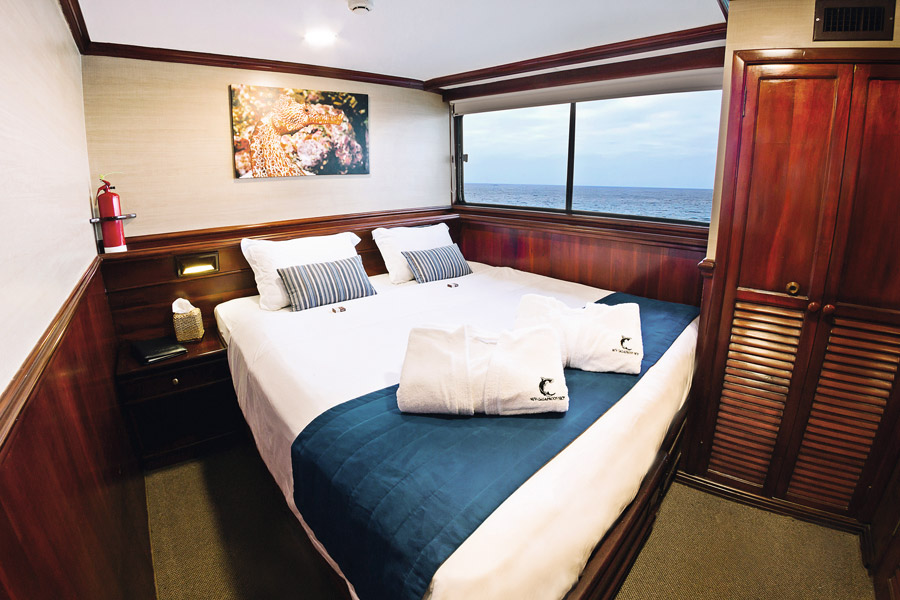 Accommodating up to 16 guests in eight private en-suite cabins, all furnished with modern amenities, the Galapagos Sky also features fine dining and a spacious lounge area, as well as a fully equipped dive deck. Cruises are scheduled to depart on a Sunday from San Cristobal for a seven night world-class diving adventure.