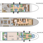 The week long itinerary offers 17-19 dives (weather dependent) from tenders, plus three land excursions exploring the highlands for tortoises on Santa Cruz, observing the panoramic vistas and volcanic topography on Bartolome and the Darwin Interpretation Centre on San Cristobal, all in accordance to the diving excursion regulations of the Galapagos National Park.