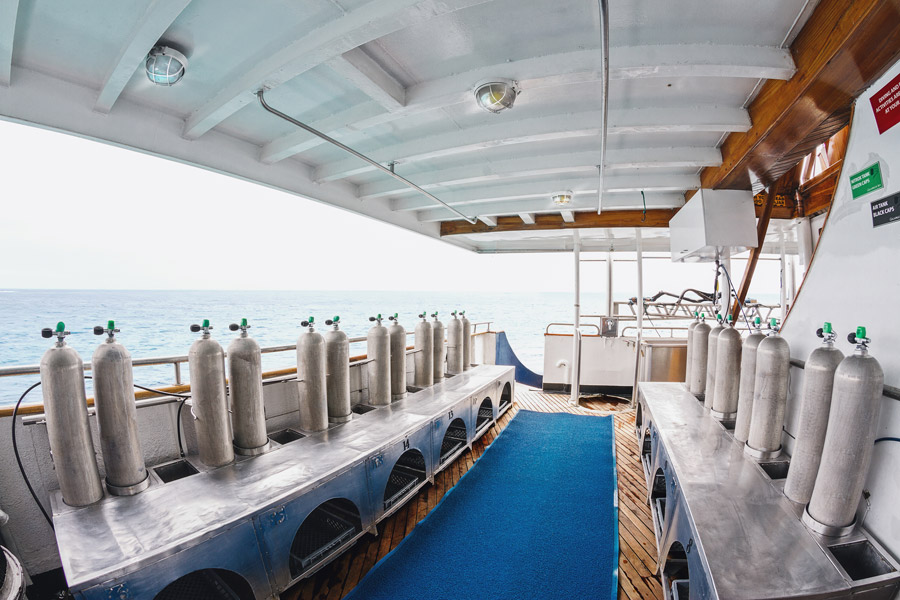 Diving in the Galapagos can be strenuous due to its currents and surge, varying water temperatures, limited visibility and diving from tenders. The trips are ideal for intermediate and advanced divers with a minimum of 100 logged dives and Nitrox qualified. The boat provides 12L tanks and a limited number of 15L tanks are available to rent locally. A 5-7mm hooded wetsuit and gloves is recommended as there is a mix of warm and cold water diving. Average water temperature ranges from 16C in the southern and central islands to 24C at Wolf and Darwin from June to November and 19C to 26C from December to May. Nitrox is complimentary for qualified divers and it is recommended that divers are suitably qualified for the best possible experience.