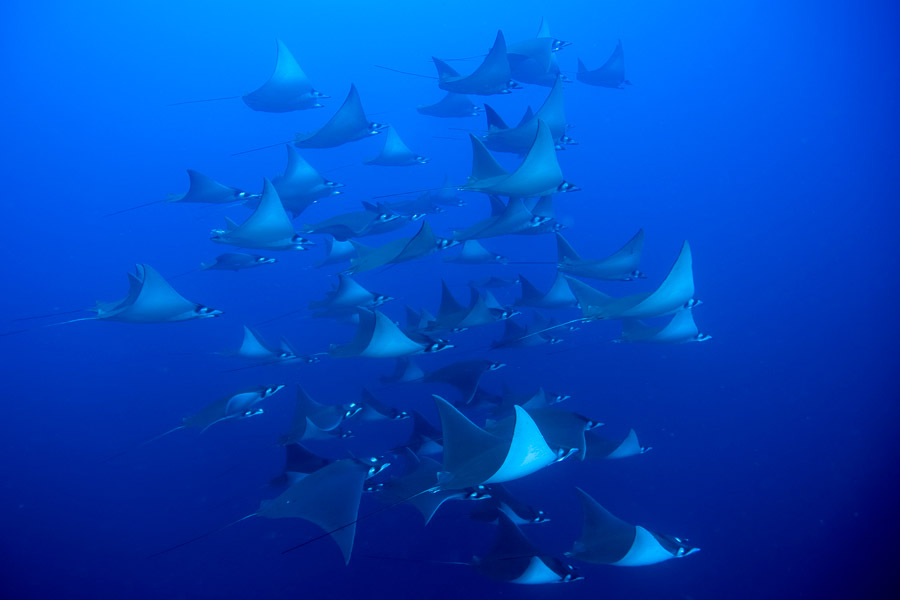 Diving highlights include three days spent around Darwin and Wolf Islands where encounters with hammerhead sharks, large pods of dolphins, manta and mobula rays (Dec-May) and whale sharks (Jun-Nov) are common. Divers will be mesmerised at the abundance and variety of marine life here including octopus, tropical fish and large schools of pelagic species. You will currently also dive at Cousins Rock where manta and devil rays are a common sight, as well as huge schools of the endemic black striped salema. Unique to Galapagos is the opportunity to dive with the endemic marine iguanas at Cabo Douglas, a highlight of this itinerary! There is also an opportunity to dive Punta Vicente Roca where mola mola are often seen. Your final dive will be at Isla Pinzon which is alive with an abundance of marine life including fish of all sizes, sharks, rays and sea lions.