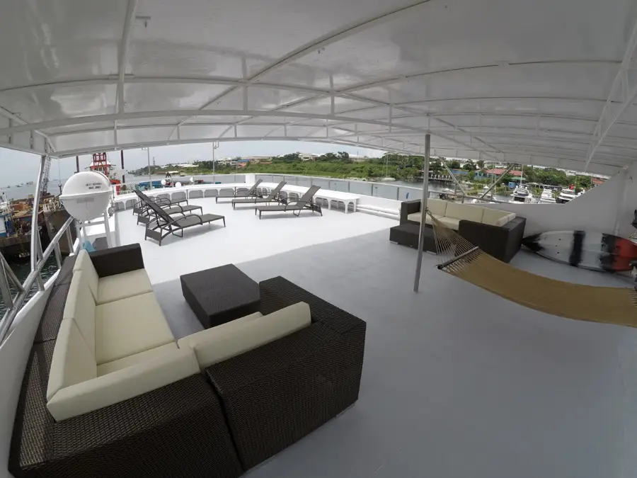 The dive deck has individual stations and the boat is accompanied by two tenders. The expert crew offer up to five dives a day on all itineraries. There's a dedicated camera room with ample charging stations and worktops. Equipment rental is available and SSI courses can be taken on some trips. Local charges include marine park and port fees, plus applicable fuel surcharges and Nitrox.
