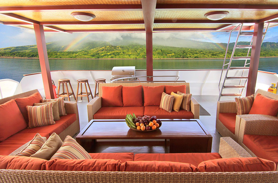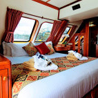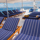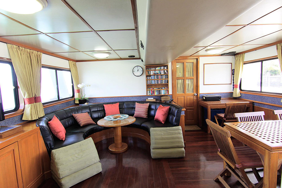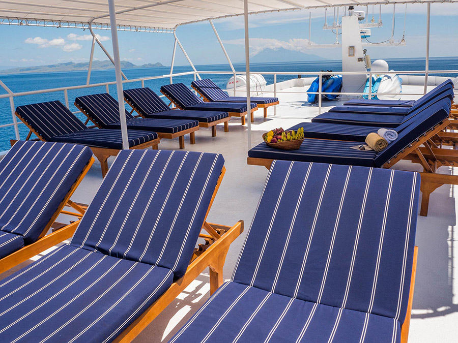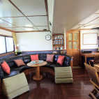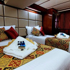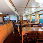 The M/V Mermaid I comfortably accommodates 15 guests in a variety of well-appointed cabins, all with en suite bathrooms, fridge, TV and modern amenities for a truly enjoyable journey of discovery. The five deluxe (one single) and master state cabins all offer panoramic sea views; the two lower deck cabins are below deck, offering affordable comfort. Mermaid I features a large dive platform, with two exit ladders, plenty of space and facilities for cameras. Both her RIBs also have ease of access ladders. You'll be spoilt for choice with a delicious array of Asian and European cuisine after experiencing world-class diving. Take time to relax between dives in the air-conditioned saloon or up on the fabulous sun deck where there are plenty of sun lounge chairs available.