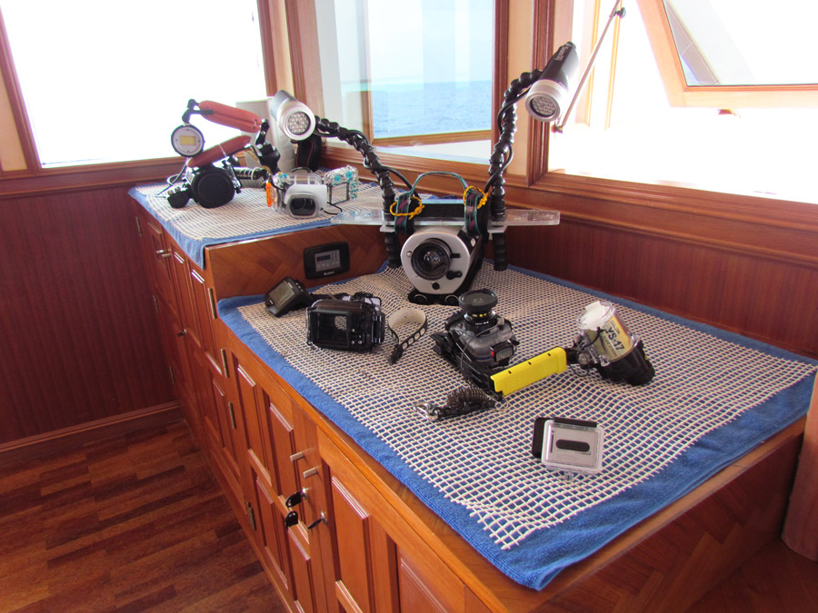 Tanks vary in size, some with double valve and both DIN and INT fittings available. Nitrox 32% is complimentary for qualified divers. The boat is rebreather friendly and 15 litre steel tanks are available on request (paid for locally). A scientific week and Manta Trust itinerary are scheduled annually.