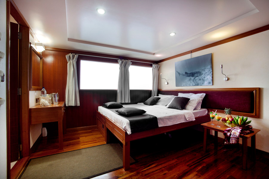 Based out of Malé for most of the year, there are a variety of seven night itineraries on offer. She is in the southern atolls from Jan-Apr (domestic flight required) in search of sharks and adrenalin fuelled dive experiences in the remote passes around Huvadhoo Atoll. She relocates to the central atolls for the rest of the year. Encounter hammerhead sharks on the Rasdhoo Atoll, manta cleaning stations, adventure diving in the Guraidhoo Pass and unique dive sites around five of the central atolls. Underwater highlights include large pelagics, drift dives and colourful reefs teeming with life.