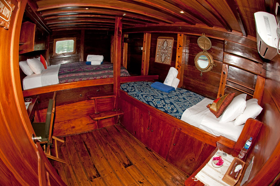The MS Aurora is a luxurious 42-metre double masted, traditional phinisi designed for a discerning dive clientele. She accommodates 18 guests in eight well furnished cabins, with a mix of twin and double cabins available.