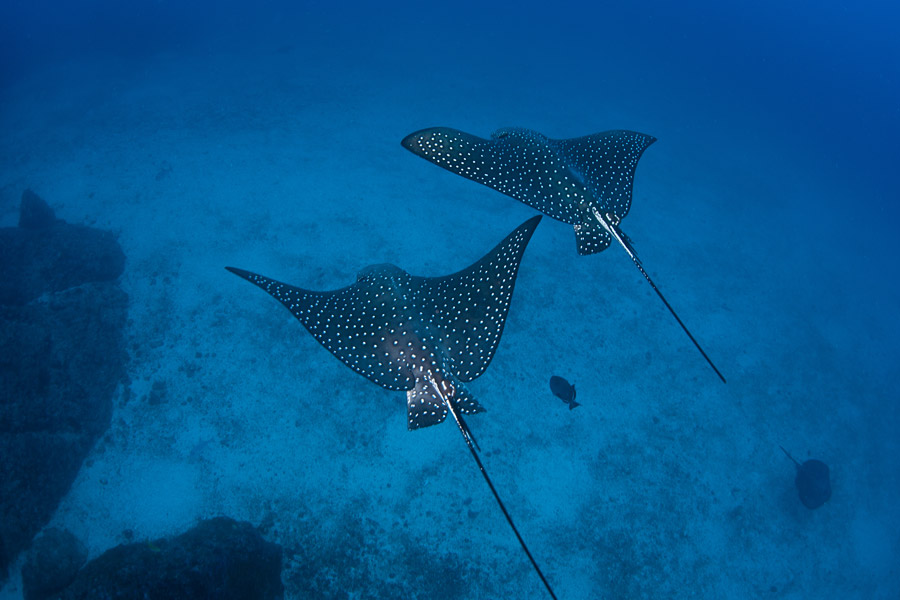 Water temperature is 26 – 29C year round and most of the action is found from 18-40 metres. The biodiversity of the marine life here is mesmerising. Expect white-tip reef sharks, schooling hammerheads, dolphin, mantas, marbled rays, sailfish, large schools of pelagic fish, turtles and the occasional whale shark. The water is home to at least 27 endemic fish species and the small rocky outcrop of land mass is home to numerous bird and plant species, some of which are endemic.