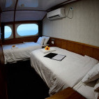 Departing from Walindi Plantation Resort, this 27 metre long modern catamaran accommodates up to 16 guests in five twin and three double bed cabins. Comfortably furnished, all cabins offer an ocean view, are air-conditioned and have an en-suite bathroom. Guest areas include a large dive deck with camera facilities, a spacious saloon and dining area and a furnished sundeck. Up to four dives a day are offered, either from the mother ship or tender. Diving is on 12 litre tanks with both DIN and Yoke valves. Nitrox is available.