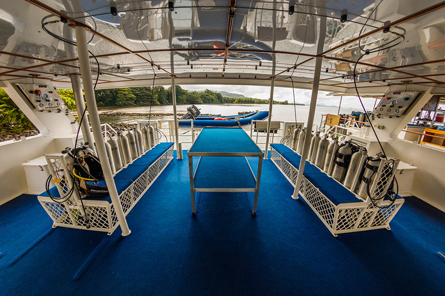 The MV Oceania is a modern catamaran operating seasonal diving adventures in the Bismarck Sea and beyond. Discover the spectacular sea mounts and lush coral gardens of Kimbe Bay, Witu Islands and Fathers Reefs.