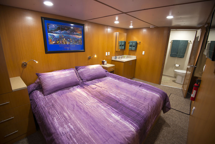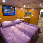 The Odyssey liveaboard can accommodate 16 guests across nine cabins. Of the nine stateroom cabins, seven are flexible allowing for a twin or double bed configuration, there are a further two cabins for single occupancy, whilst the final cabin has a double bunk. All cabins are carpeted and feature air-conditioning, en suite bathroom, DVD player and an ocean view.