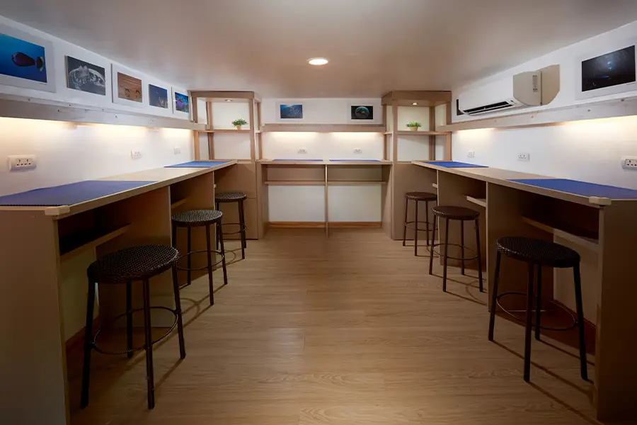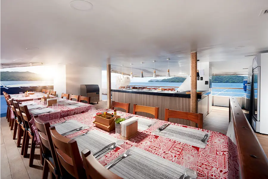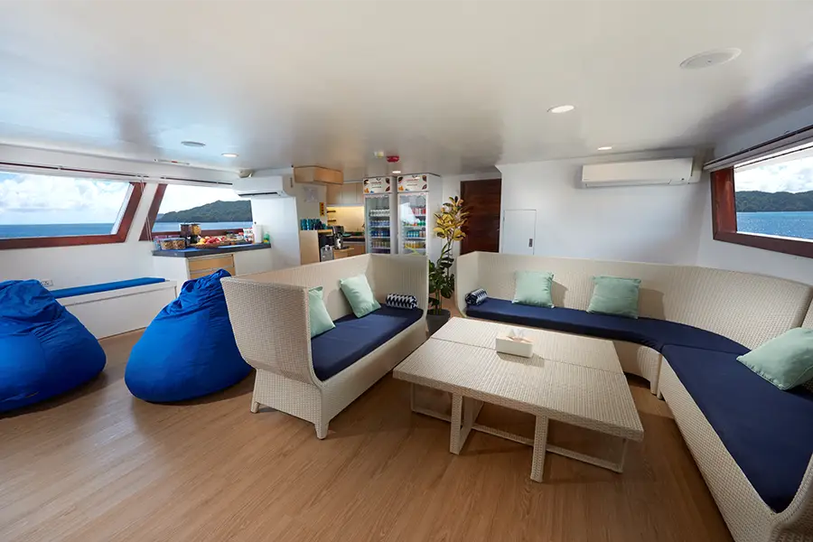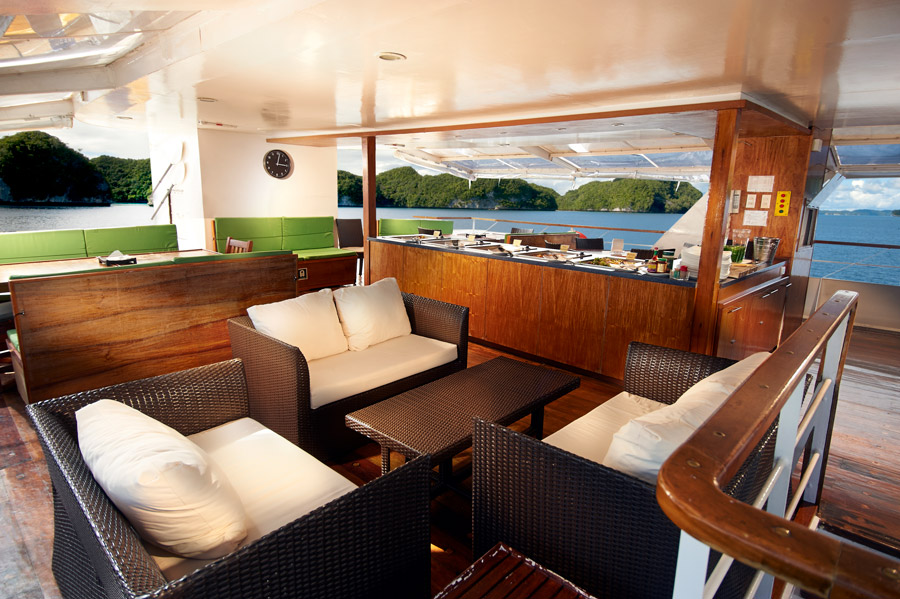 Facilities on board Solitude One include a spacious dive deck, a comfortably furnished lounge and a well-equipped digital room incorporating two computer terminals. Meals are provided in the al fresco dining area. Snacks and soft drinks are included and available when desired. The top deck offers shaded areas as well as sun loungers plus a hot tub. Massages are available from the onboard therapist. WiFi internet access is available via the onboard VSAT satellite system (local charge).