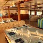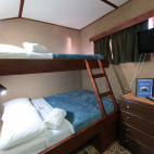 Up to 20 guests are accommodated in ten comfortable, air conditioned cabins with private facilities on the main deck. Seven of these feature twin bunks (same gender sharing), two have a double and single bed and there is one cabin with a double bed. Facilities on board include a sun deck with shaded area, loungers and a jacuzzi. The spacious dining area is air conditioned and furnished with comfortable sofas and chairs. The kitchen provides a variety of Mexican, European and Asian cuisine and the bar is stocked with complimentary soft drinks and draught beer.