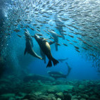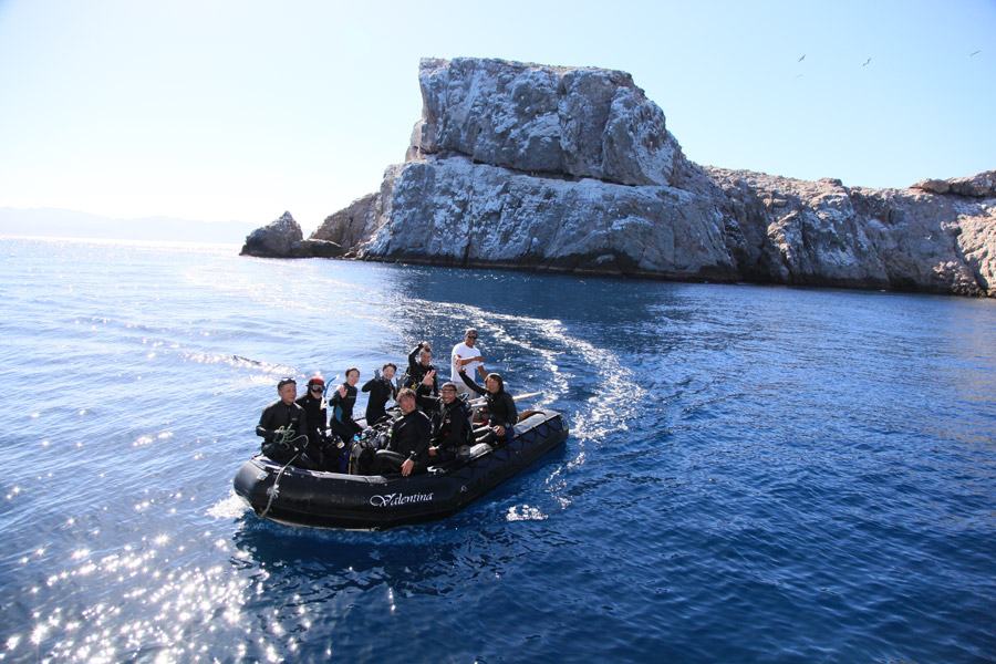 Seasonal itineraries to the Sea of Cortez (Jul-Oct) are five or six nights in duration. Up to four dives are offered on all but the final day when two dives plus a whale shark snorkel operate from the accompanying Zodiac boats. The itinerary circumnavigates the island of Espiritu Santo and includes time at La Reina, with its huge walls of skip jacks, the playful sealions at Los Islotes, and the seamounts of El Bajo where hammerhead sharks and marlin are often seen. Further highlights include the squadrons of mobula rays at Punta Lobos, the Salvatierra ferry wreck and the chance to snorkel with whale sharks in La Paz Bay.