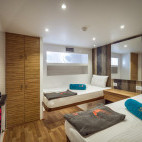 This experienced vessel comfortably accommodates 26 guests in 13 cabins across three decks. Custom built for divers, guests can expect features and facilities that provide an exceptional on board experience. The lower deck is furnished with eight standard twin bed cabins. The three premium cabins (twin bed) are located on the main and upper decks along with a junior suite (double bed) and an incredibly spacious executive suite (double bed). All cabins are contemporary in design and feature individually controlled air-conditioning and en-suite facilities. A mini fridge is provided in all premium cabins and suites, which are also furnished with a TV. Towels and a dive poncho are provided. Complimentary WiFi internet access is available (signal permitting).