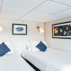 The flagship of the Nautilus Fleet, this custom built liveaboard features 12 staterooms and a premium two-room suite. The lower deck features eight staterooms with various bedding configurations and a triple occupancy (mixed gender) cabin with a bunk and double bed. All have porthole windows. Three superior suites are located on the wheelhouse deck alongside Emerald, the premium suite offering panoramic ocean views. All cabins are air-conditioned, with en-suite facilities and offer ample storage space. Wi-Fi internet access is available on board.