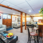 The boat features modern, spacious amenities suited for divers. The main salon, dining area and bar are surrounded by huge panoramic windows giving guests great views to the surrounding world. The dive deck complemented by a water level platform giving divers plenty of room to move around. There are ample camera tables and charging stations on board. The boat is Rebreather friendly and Nitrox is available.