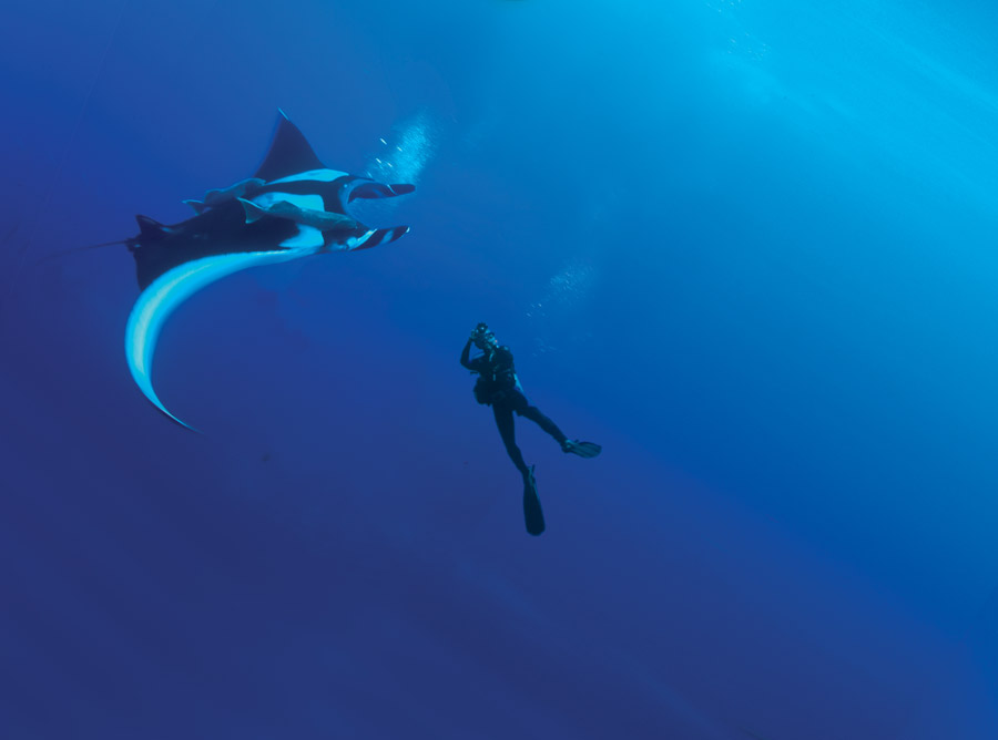 Socorro is just one island in the Revillagigedos Archipelago located 400 kilometres off the southwest of tip of Mexico’s Baja Peninsula. The eight night trips to these remote islands operate throughout the season (Nov-Jun). This bucket-list trip offers encounters with giant Pacific mantas and huge pods of dolphin year round, as well as schooling scalloped hammerheads, whale sharks (Apr-Jul and Nov-Dec), humpback whales (Jan-Apr) and magnificent baitball diving (May-Jun). It is common to observe up to ten species of shark during a trip as you dive San Benedicto, Socorro and Roca Partida. It’s here that you’ll get to experience intimate and unique social behaviour from the mantas who seek human interaction. Visibility ranges from 20-30 metres and the water temperature ranges form 23C in February to 28C in November.
