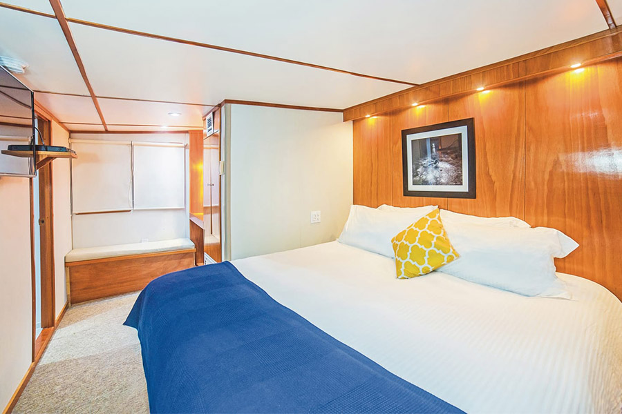 The main deck also features a comfortable lounge, galley, dining area and the spacious dive deck. WiFi internet access is available for a fee. Up to four dives a day are offered from one of two tenders on the Socorro itineraries and there’s ample opportunity for everyone in the custom built cages on Guadalupe trips. The Nautilus Under Sea is rebreather friendly and Nitrox is available.