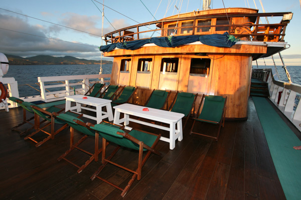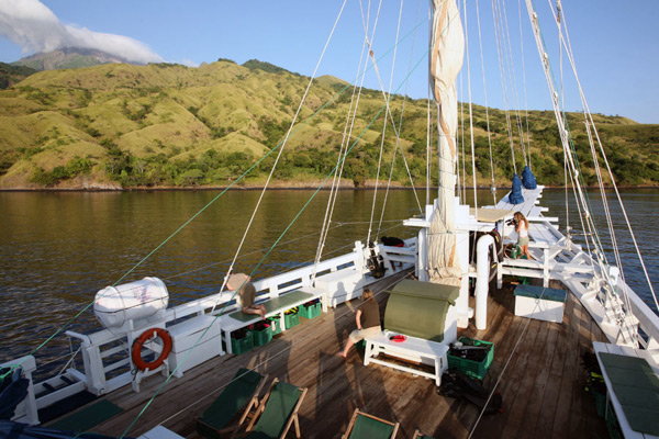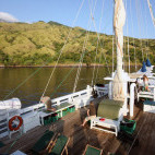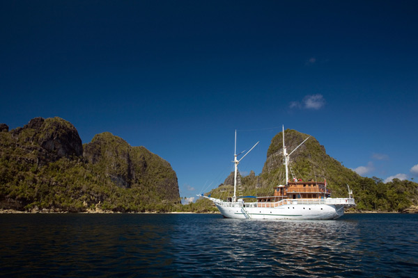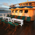 Depending on the season, she cruises Komodo National Park (May-Sep) and Raja Ampat (Oct-Mar) visiting virgin dive sites of unparalleled excellence. All dives are guided to ensure safety and comfort, and planned to meet everyone’s expectations and diving skills. Up to four dives a day are offered, each from the accompanying zodiacs. Land excursions or massages on a floating spa (for surcharge) can be arranged.