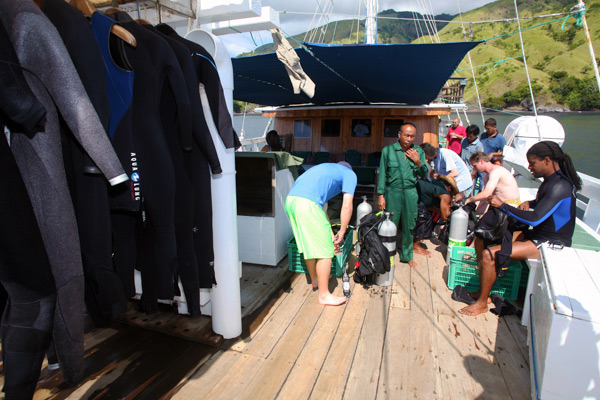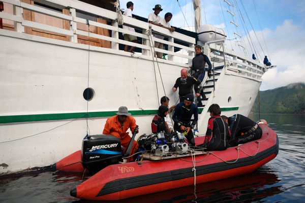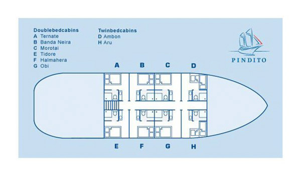 With over 15 years experience sailing in these waters, Pindito is maintained to the highest standards of safety and reliability, and offers an unforgettable combination of traditional Indonesian ambience and comfort. Spacious cabins boast individual air-conditioning, several 220 volt charging facilities, separate toilet, shower and washbasins. There is an air-conditioned lounge in which to relax and, for photo/video-graphers, an onboard computer.Nitrox is complimetary.