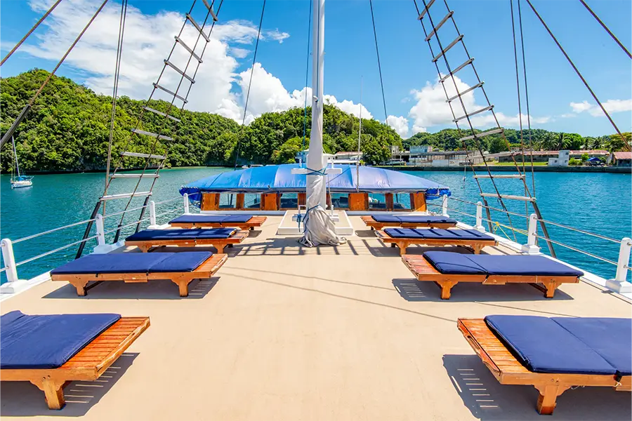 The luxurious 40 metre S/Y Palau Siren is a traditional phinisi boat, custom designed and handcrafted from ironwood and teak. Built by divers for divers, rest assured every need as been thought of and implemented.