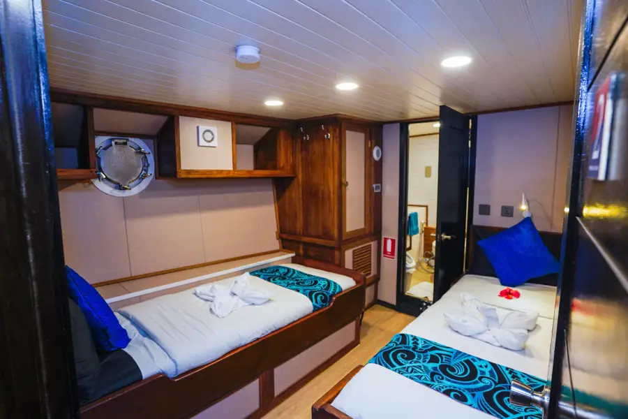 The Solomons Master accommodates up to 16 passengers in eight cabins. Guests can choose between Classic lower deck cabin, Premium cabin on the main deck, or Superior cabin on the upper deck. Each are en suite and have individual air-conditioning units.