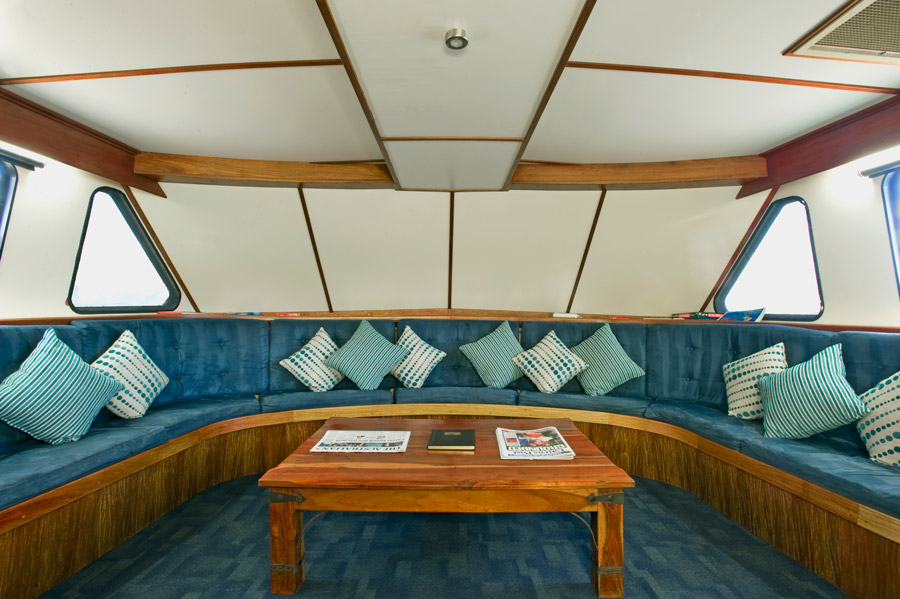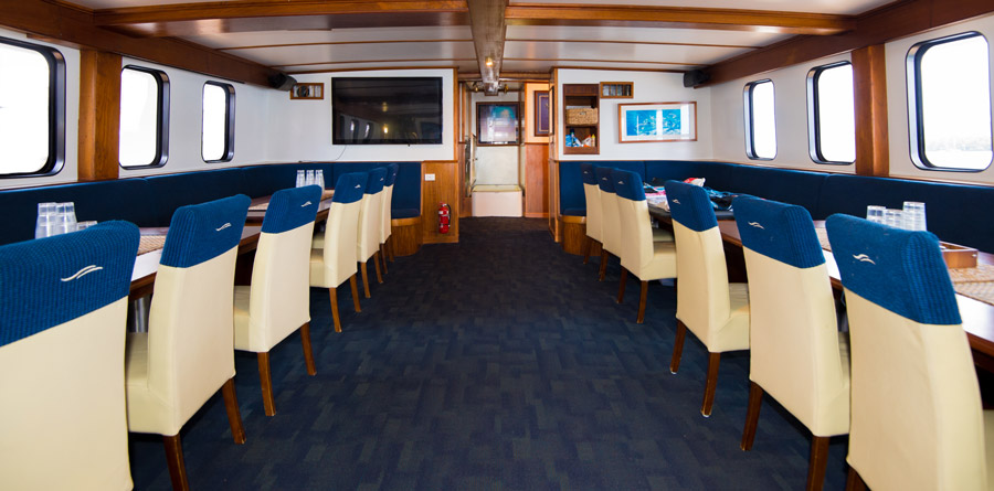 The vessel boasts a luxury salon equipped with wide screen TV, projector and DVD. Diving is mostly from the dive deck, but there are also two tenders. Even with a full boat (26 guests), everyone can find their own private space, and the electronic stabilisers make her very comfortable even in high seas.