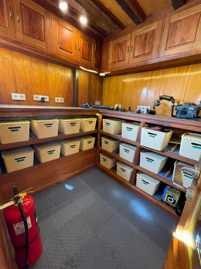 Designed and built from scratch, the eight spacious cabins are en-suite, sound proof and incredibly comfortable. The entire vessel has been engineered for a minimum of noise and vibration as well as catering specifically for divers. An experienced and professional crew see to every individual’s needs, offering an efficient and convenient service throughout your eleven night cruise. Up to four dives a day are offered, either from the platform or a dinghy. Nitrox is available.