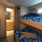 This purpose built luxurious dive boat cruises the islands of the Turks and Caicos throughout the year. Accommodating 20 passengers in ten air-conditioned stateroom cabins, the boat features all the modern conveniences divers have come to expect. The two VIP cabins are furnished with a queen bed and are located on the boat deck beside a spacious and comfortable sun lounging area. The main deck features five cabins which feature either a queen bed or twin configuration. The lower deck includes three cabins with twin bunk beds. All cabins have port lights or windows and en-suite bathroom facilities.