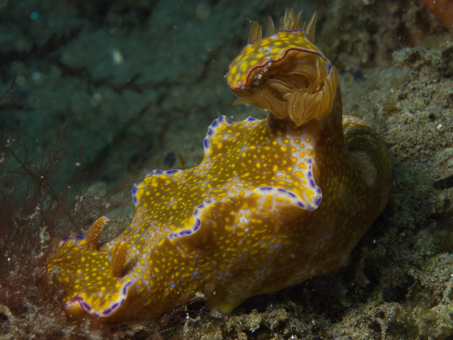 In contrast to the muck of the Bay, the clear water sites on the south and east coast offer a spectacular topography with seamounts, caves and archways adorned with soft corals. It’s at these you can expect to see larger pelagic species such as Napoleon wrasse, sharks, rays and grouper.