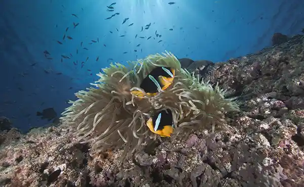 The diving around the Damaniyat Islands is spectacular with walls, drop-offs, submerged reefs, swim-throughs and caves. Coral reefs cover up to 70% of the dive sites with more than a hundred different species of soft and hard coral. Marine life is abundant with prolific numbers of colourful reef fish, stingrays, occasional turtles, leopard sharks and on rare occasions a whale shark.