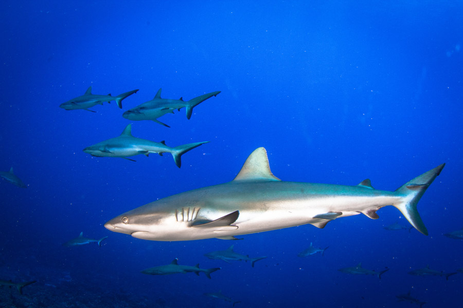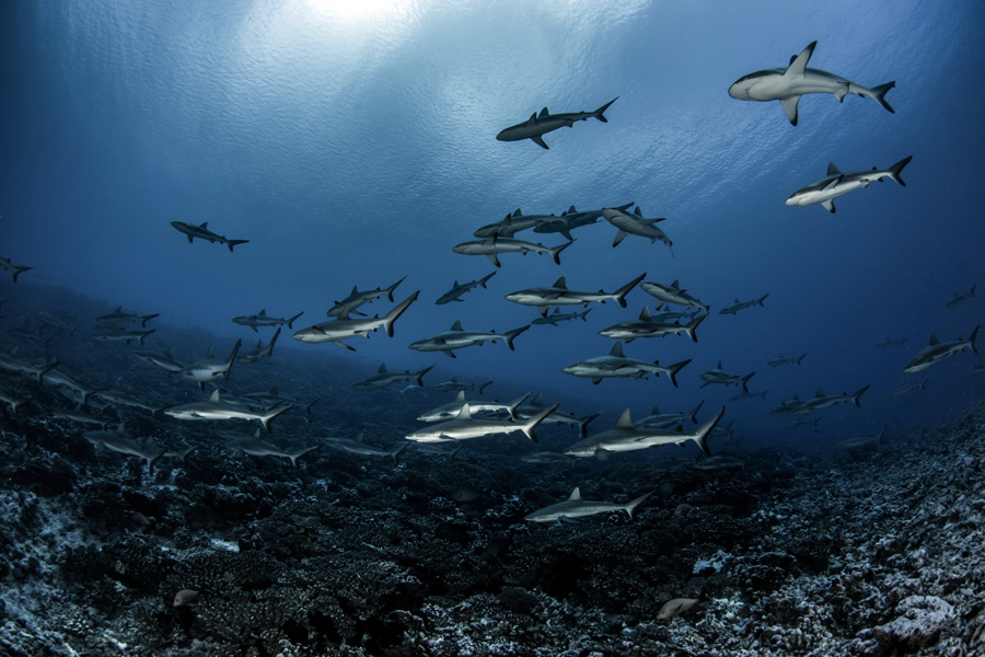 The two passes connect the expansive lagoon to the ocean of this rectangular shaped atoll. Garuae in the north is home to a prolific and abundant marine life where divers will enjoy amazing pelagic encounters. Dives in the 1,600 metre wide pass are conducted on an inflowing current offering a thrilling drift dive experience. Sightings include walls of grey reef, black-tip, white-tip, hammerhead, tiger and silky sharks as well as rays, dolphin, turtles, tuna, barracuda, snapper and colourful reef fish, most of which can be found taking shelter in the canyon. With plenty of pelagic encounters and possibly the highest density of fish life you’ll ever encounter, it’s an unforgettable experience and one of the main reasons to visit French Polynesia, as a diver.