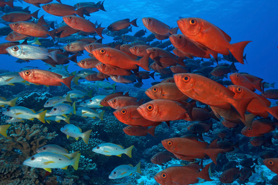 Both passes serve as the meeting place for an extraordinarily diverse marine life including several species of shark and rays, huge schools of pelagic fish and plenty of colourful reef dwellers.