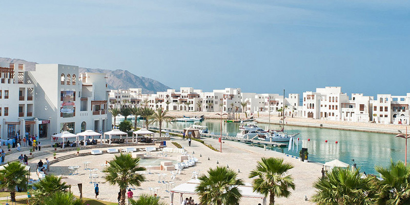 Jebel Sifah’s unique architecture combines indigenous elements with classic Middle Eastern design. A strong essence of traditional Oman is also mirrored in the use of rich and vibrant colours. The marina town comprises of luxury hotels, a 200 berth marina and an 18-hole PGA golf course.