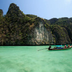 The limestone cliffs of Koh Phi Phi plunge underwater into the aquamarine waters of Phang Nga Bay. forming the colourful soft coral walls for which Phi Phi is famous.
