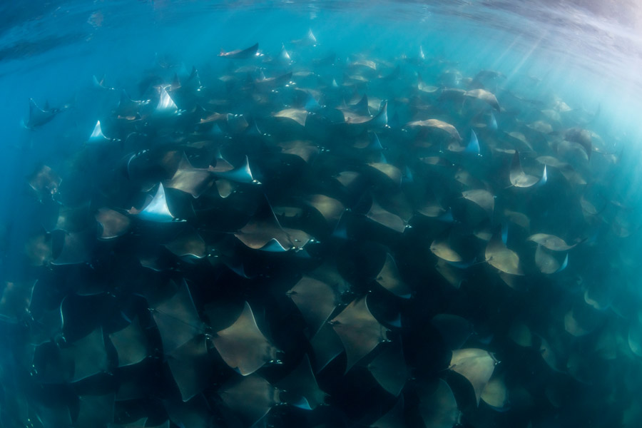 From spring to summer, divers can witness one of the most extraordinary marine events: mobula ray aggregations. Also known as Mobula munkiana or Munk's pygmy devil rays, these creatures gather in formations that can include over 100,000 individuals gliding, leaping, and breaching—a visual spectacle and a prime opportunity for wide-angle photography.
