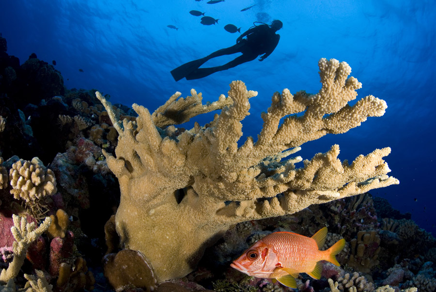 Tahiti has fine visibility and some interesting or unusual dive sites such as the underwater fresh water springs. It also has some interesting topography, with impressive walls covered in wonderful corals and a myriad of colourful reef fish, but they often lack the abundance of large marine life found in some of the outer islands.