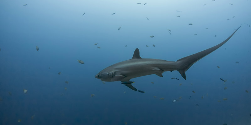 Malapascua is one of the best shark diving locations in the Philippines. Sharks seen here include white-tip, black-tip, bamboo, nurse, cat and the magnificent thresher. Monad Shoal is known as the only place in the world where thresher sharks can be closely observed on a daily basis. Other large pelagics seen on Monad include manta and mobula rays.
