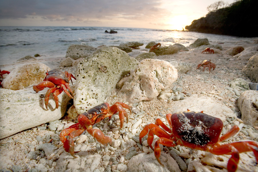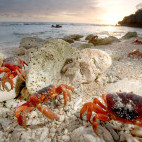 Each year at the beginning of the wet season (Oct-Nov) an estimated 43 million red crabs begin a spectacular migration from the forest to the coast to breed and release their eggs into the sea, with baby crabs returning approximately one month later. It is no coincidence that the spawning of the red crab population coincides with the arrival of the whale sharks (Nov-Apr).
