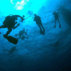 Marine life is abundant in the subtropical waters attracting colourful damsels and wrasse, rays, barracuda and other larger pelagic species. The volcanic topography creates diving adventures under arches, in caves, along rocky reefs and gulleys. The dive centre is open May-Oct during the warmer months where sea temperatures range from 17–24C and visibility is 30 metres on average. Photographers will enjoy capturing the spectacular scenery as much as the wildlife.